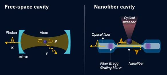 While the pioneering works have been demonstrated by using the free-space cavity, formed by a pair of bulk mirrors, the rise of nanoscale and integrated cavity technologies, such as photonic crystal cavities and whispering gallery mode resonators, enables cavity QED platforms to become a key tool in developing scalable, high-performance quantum devices [9 – 13]. Among various platforms, nanofiber cavity is one of the ideal platforms due to the strong atom-photon coupling [14], large capacity of atom number, low optical loss inside the cavity and the seamless integration into the optical fiber network [15]. We will examine each advantages in detail as follows: