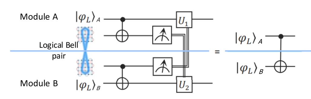 While recent experimental demonstrations of remote CNOT gates using trapped ions have shown promise, they currently suffer from low operation rates (~100 Hz) and high error rates in the few-percent range [5]. These errors exceed those of high-performance local gates by at least an order of magnitude, creating a significant bottleneck for modular scaling. To reach utility-scale performance, we must move beyond these noisy physical links and transition to logical-layer abstraction.